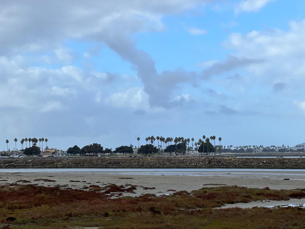 Overall this walk was nicer than last week’s route. It parallels Highway 8 (south) and Sea World Drive (north), but has unobstructed views of the river. I suspect the trees which are prevalent further up the river cannot tolerate the salt water.