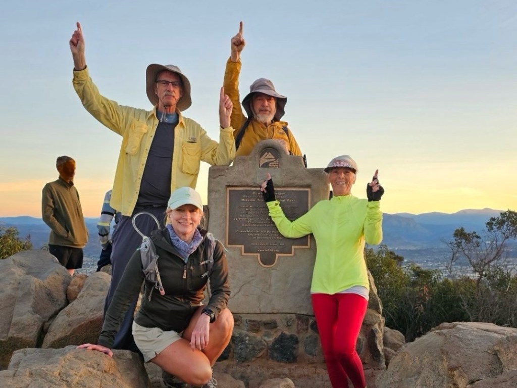 We met at the staging area and caught the sun peaking over the mountains from the top of Cowles Mountain (1592’), proceeded to Pyles Peak (1379’), the we returned to the staging area.