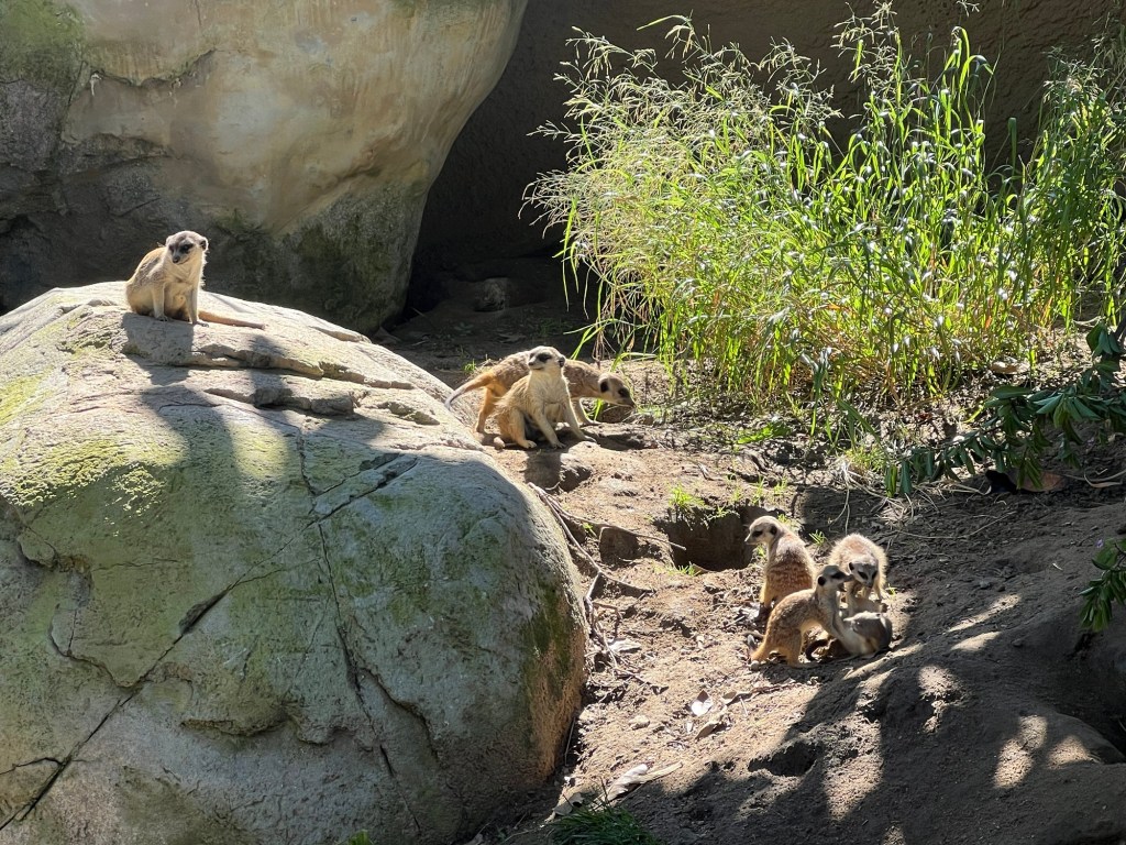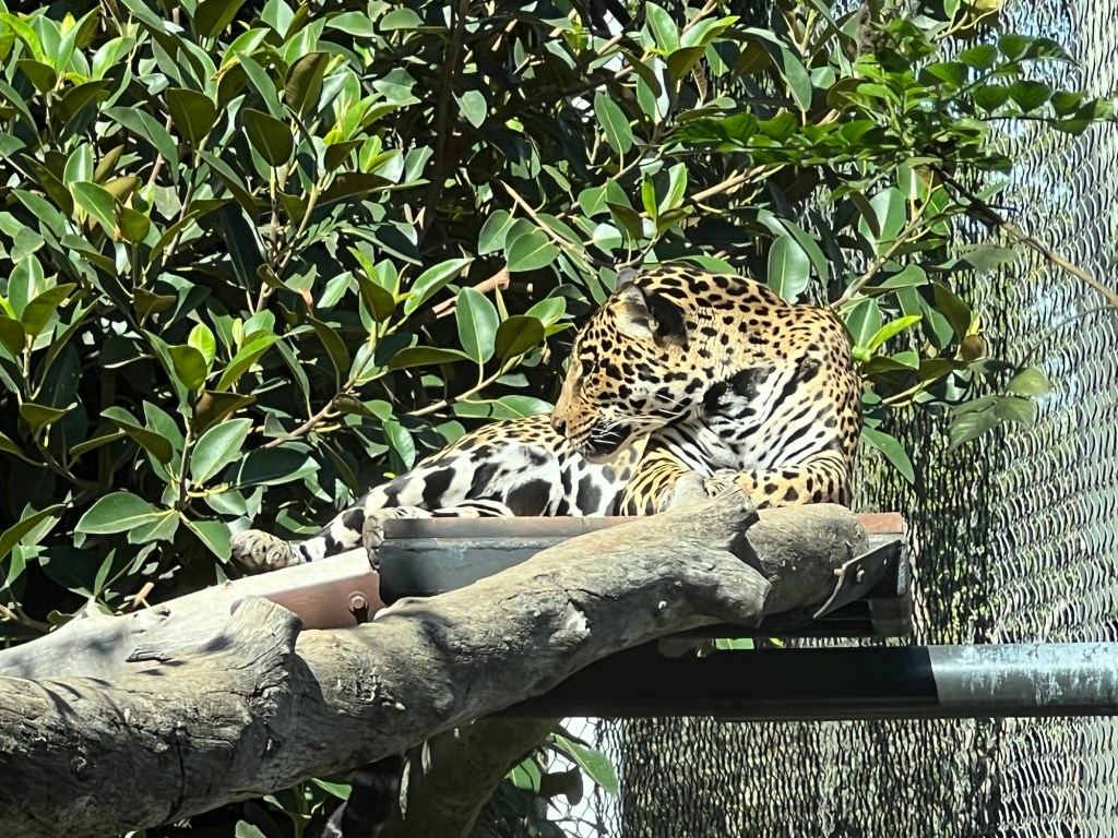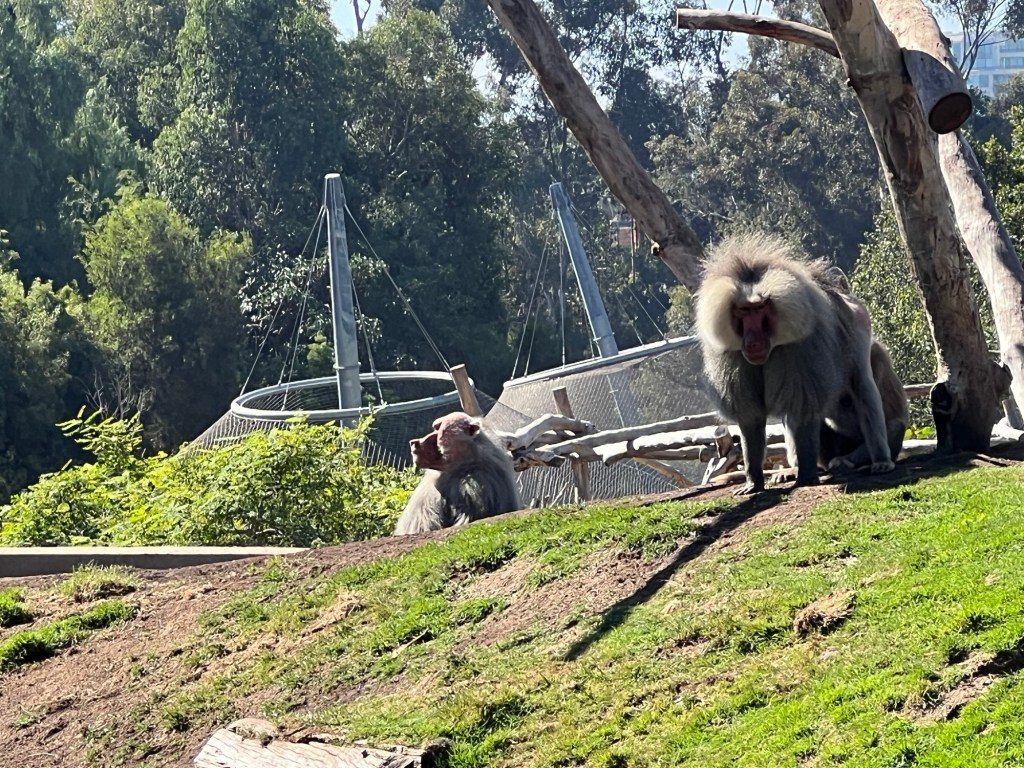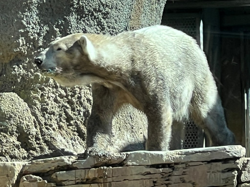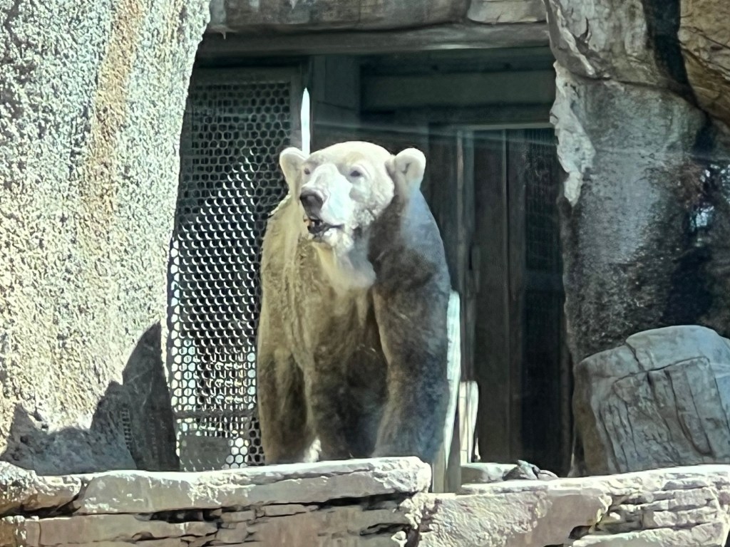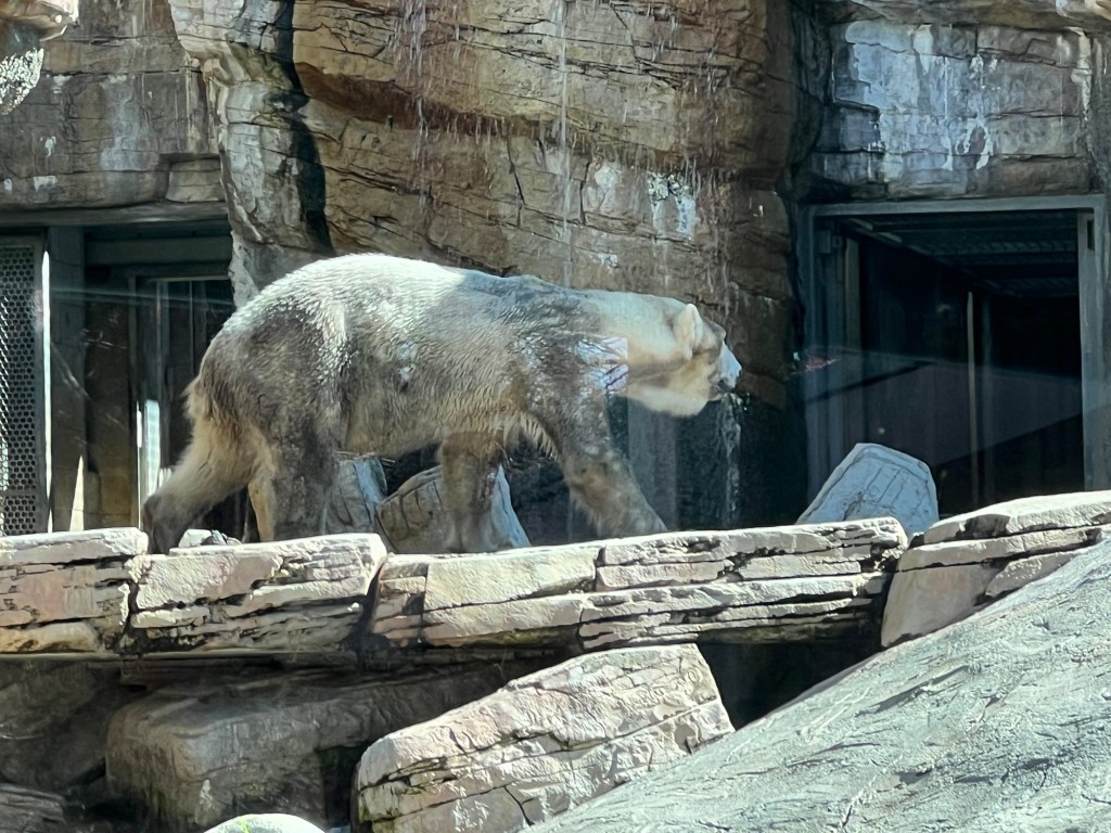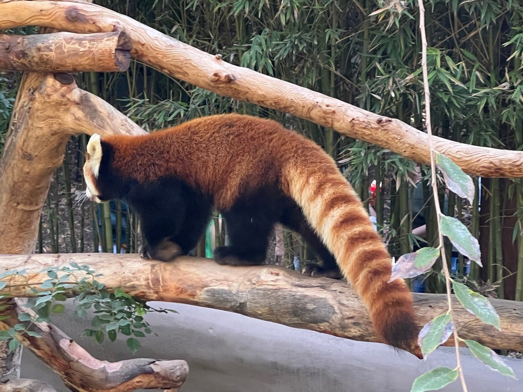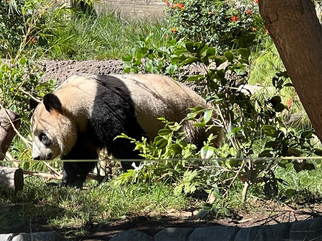 Then I spent some time at the zoo. There was no one in the standby line at 10:30 – I literally walked into the Panda exhibit. Xin Bao was hiding along the back wall of her enclosure, but it was feeding time for Yun Chuan who was released after his bamboo was in position.