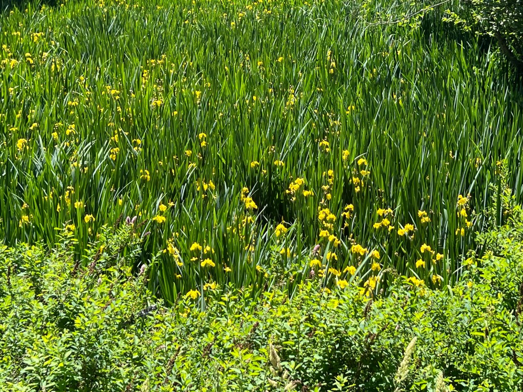 The hike took us along the Little Spokane River. Today the Yellow Flag irises (non-native/noxious weed) were in bloom.