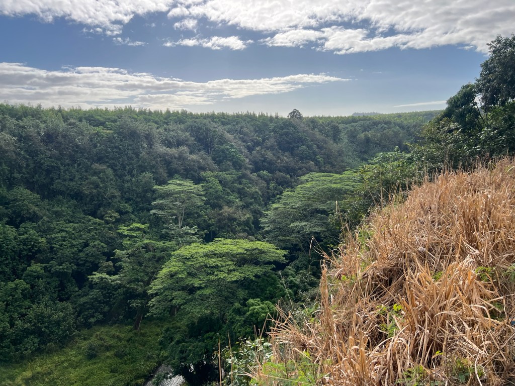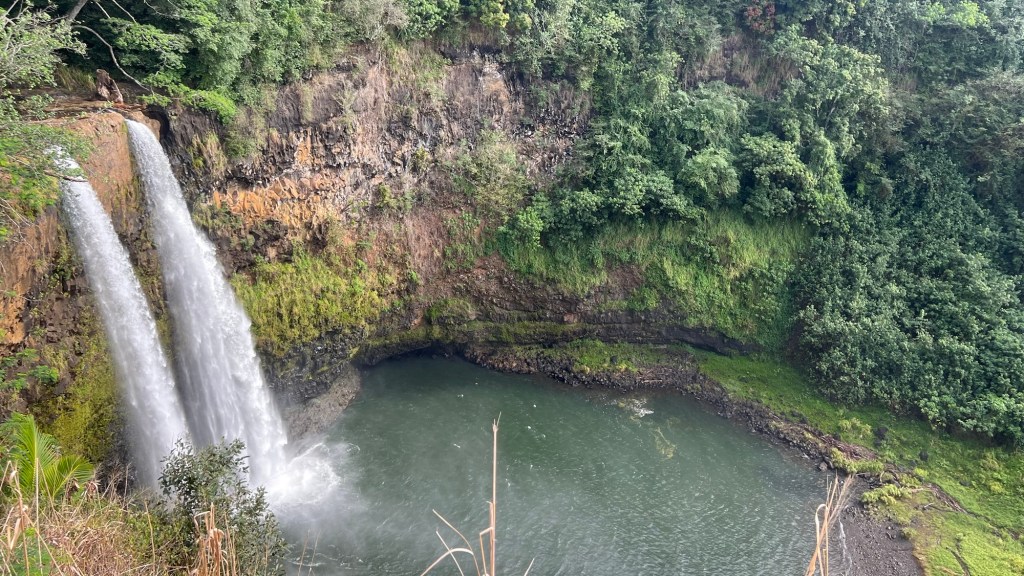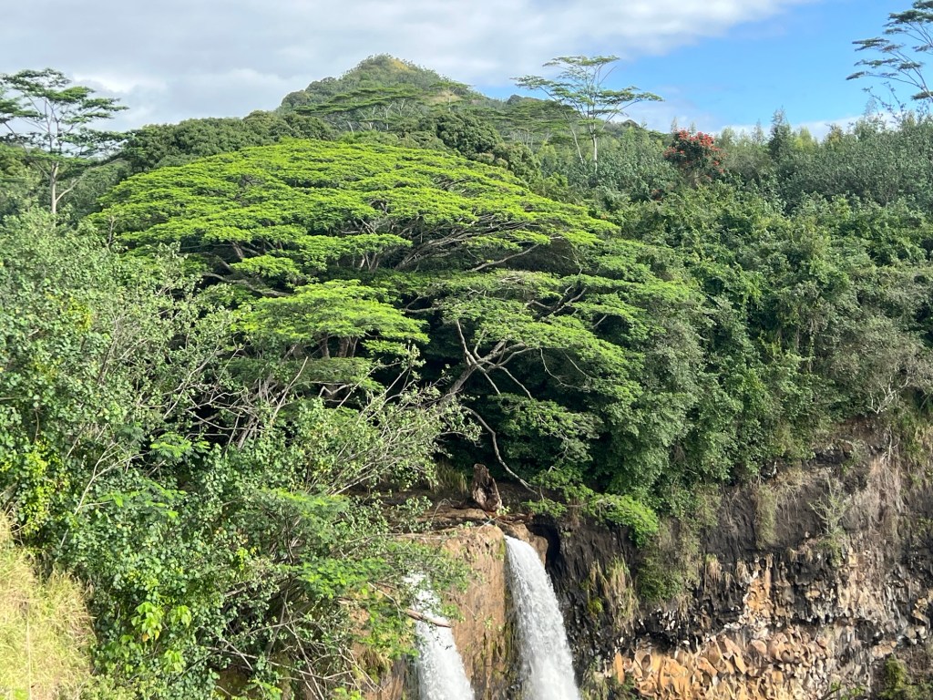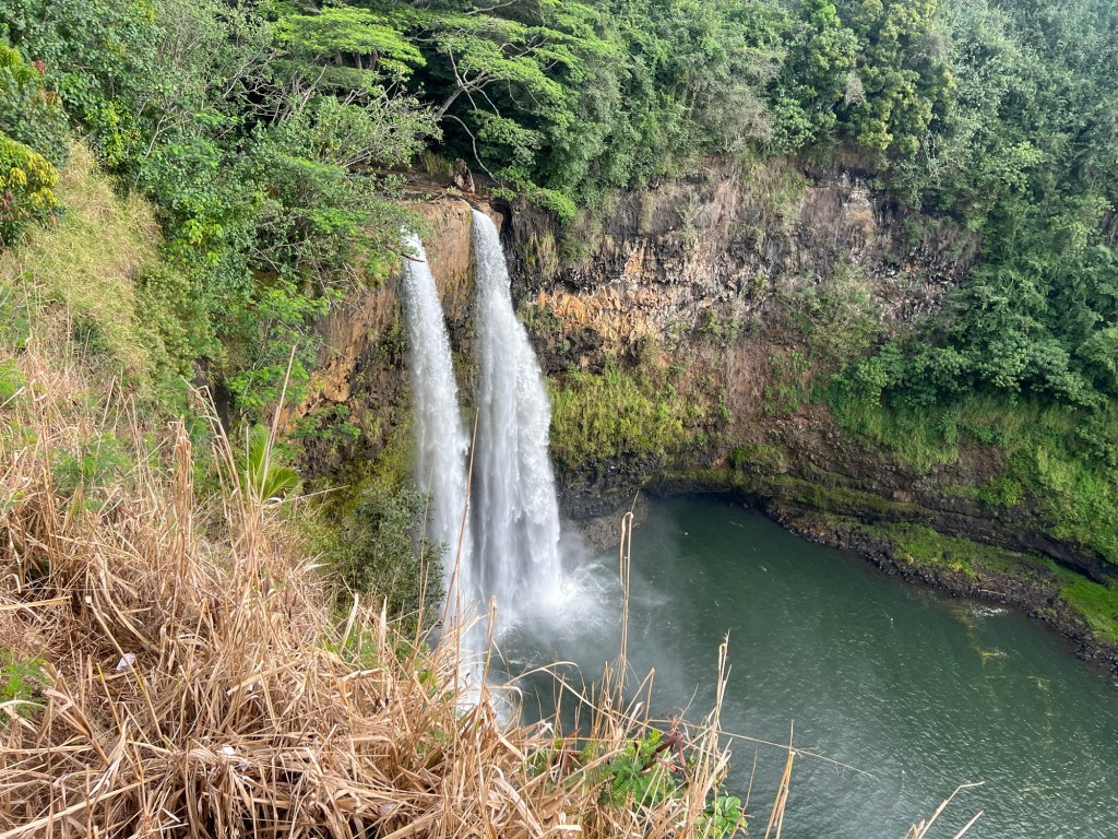 Today’s adventure started with a visit to Wailua Falls. The parking gods smiled on us again and we got a space right away.