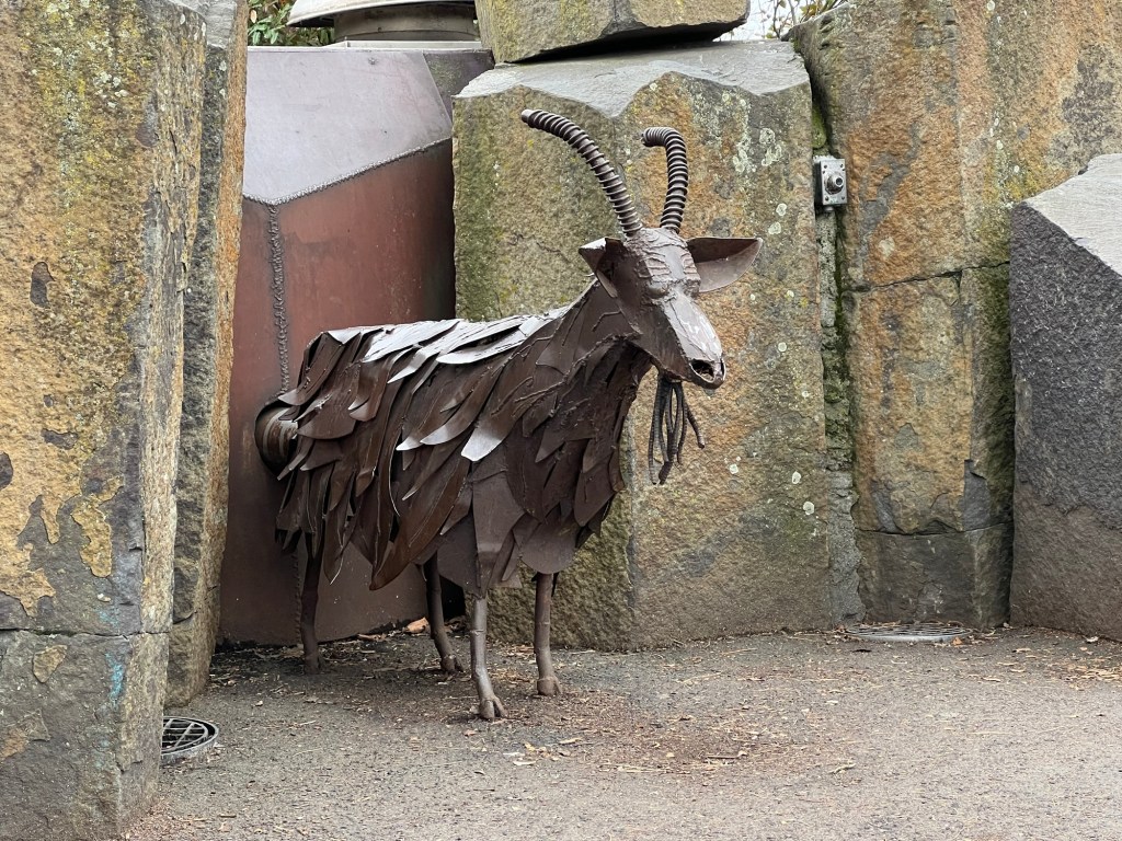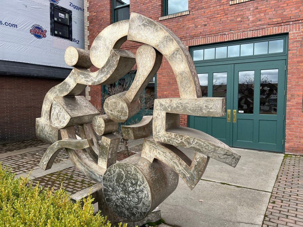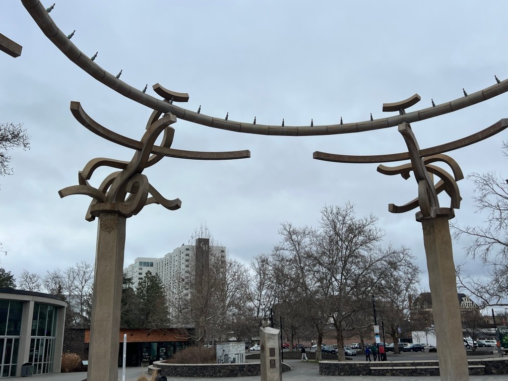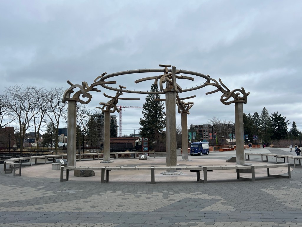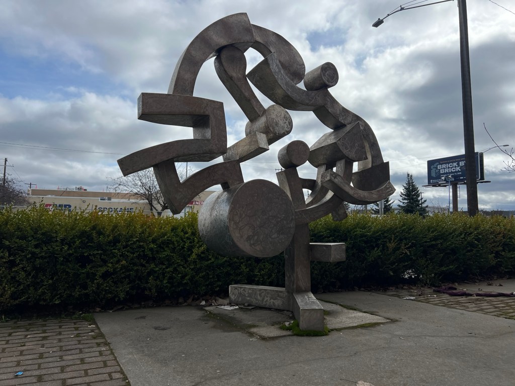 Some more art from Harold Balazs. The Rotary Fountain” (a collaboration with Bob Perron) is in Riverfront Park. “Listen” is in front of the Spokane Public Radio building.
