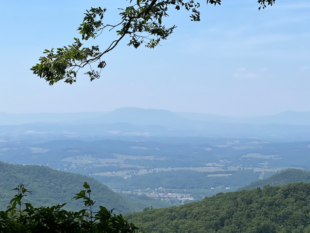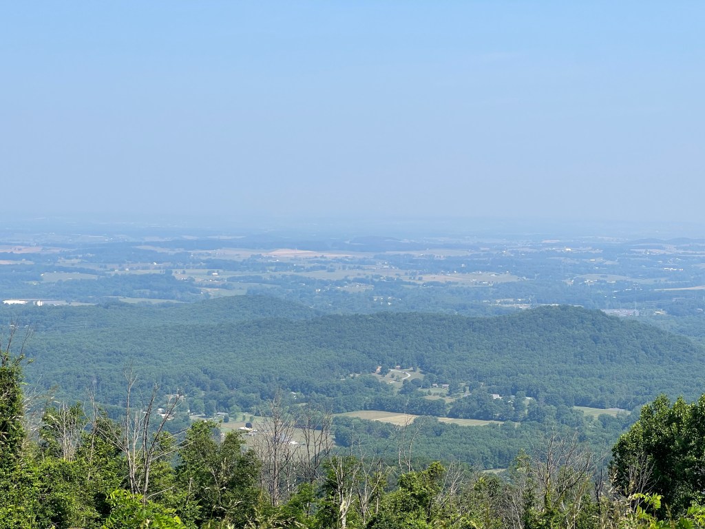 I am ready to return to my original plan: Roanoke via Skyline Drive with a visit to Luray Caverns. Skyline Drive is along the crest of the Blue Ridge Mountains with panoramic views of the Shenandoah Valley. Between it being partly cloudy and the smoke from the Canadian wildfires, the views weren’t as good as they could have been.