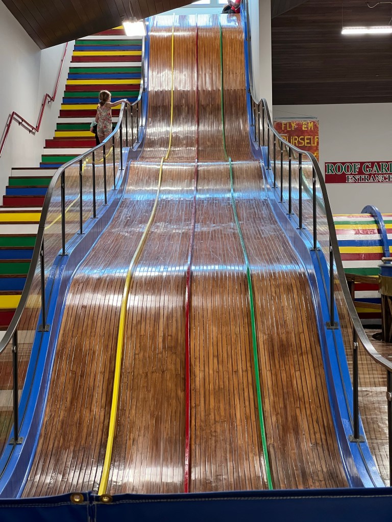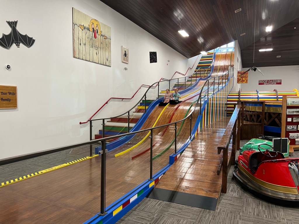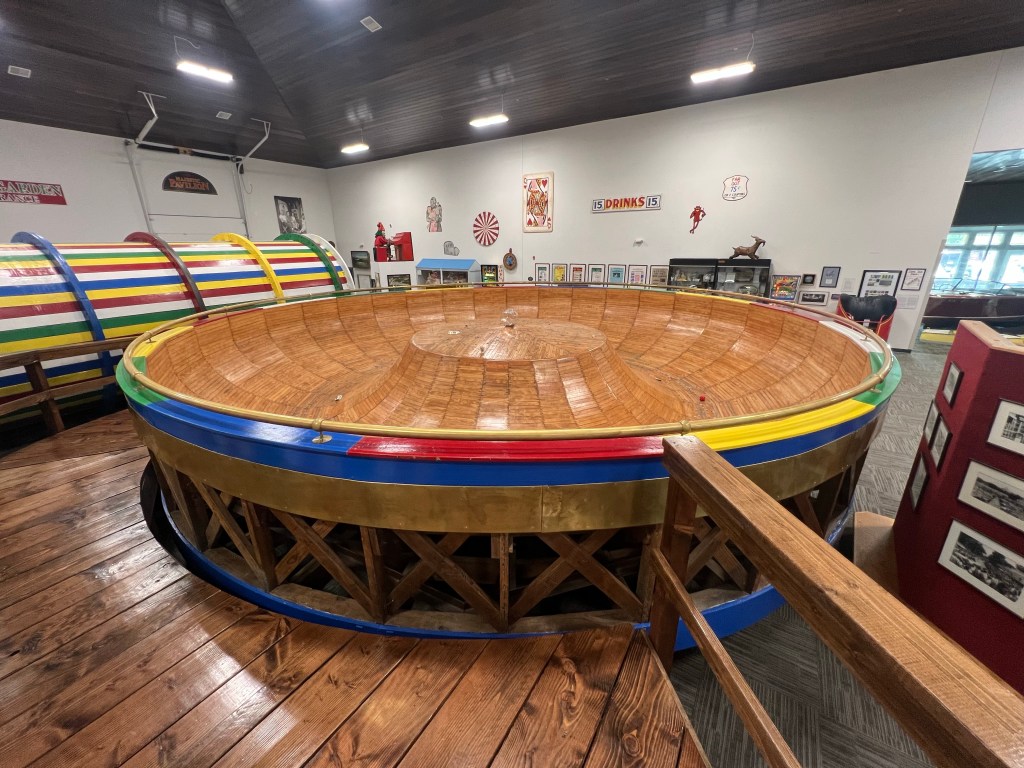 The museum also houses an exhibit rides and memorabilia from area amusement parks, past and present, on the lakes. The slide is still in use.