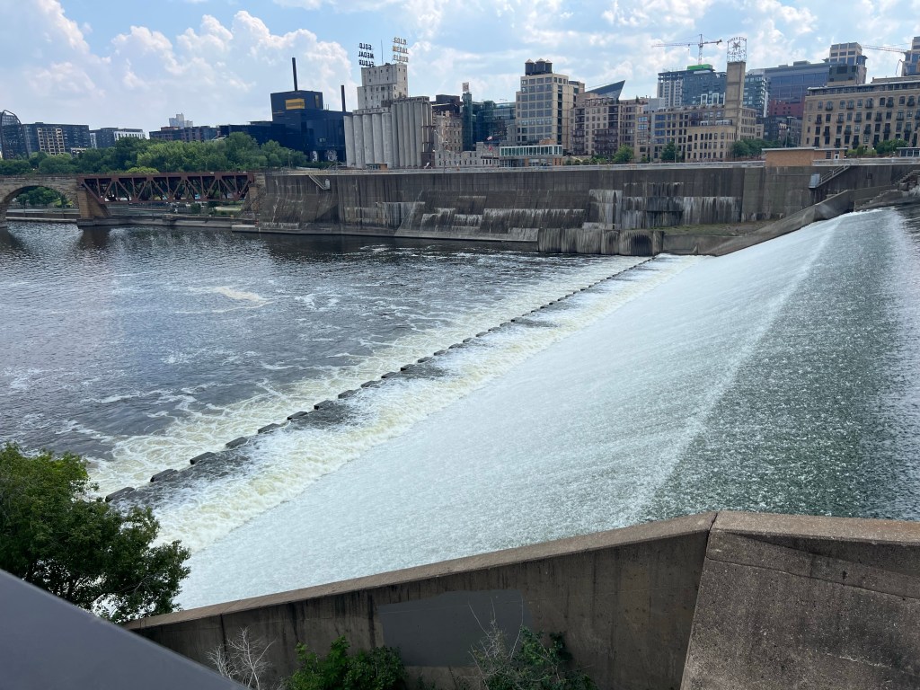 After lunch my friend Tom took me on a walking tour of the Downtown Waterfront. We started at St Anthony Main with buildings from the late 1800s. The area is home to Pillsbury A-Mill, the largest flour mill for 40 years; and Water Power Park.