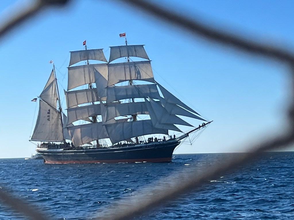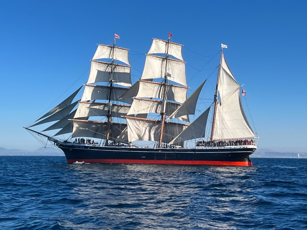 The Star of India sailed today to commemorate her 160th anniversary. Three ships: the San Salvador, the Californian and the Bill of Rights joined her in a companion sail.